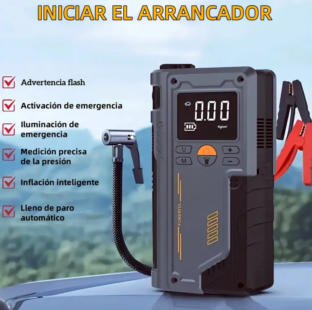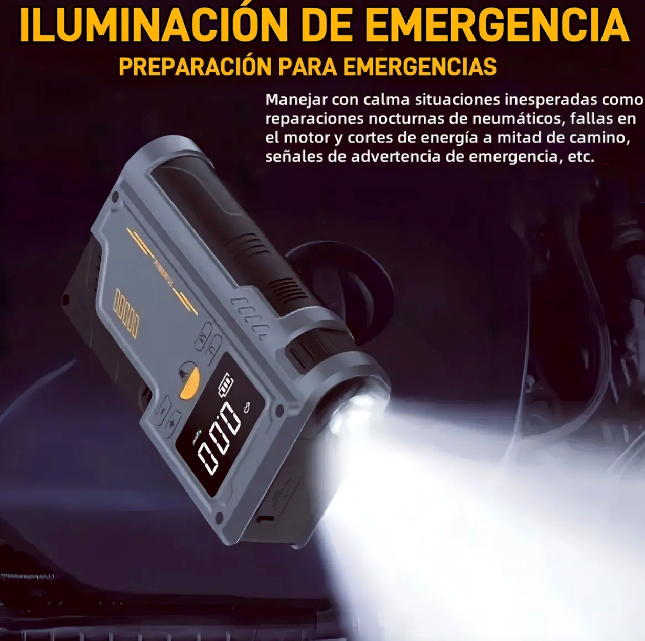 El aliado perfecto para emergencias en carretera. Compacto, potente y fácil de usar.